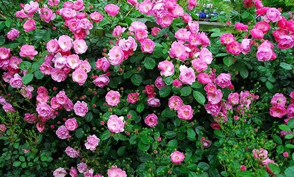 桃色の椀咲きで花を隙間なくつけ、株は3mくらい伸長しますが、短く切っても良く咲きます。