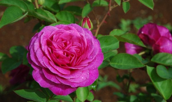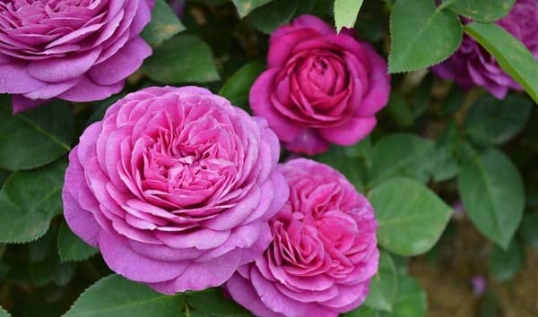 ヴァイオレットピンクの花色と丸弁ロゼット咲きの花形、ダマスク系の強い香りが魅力的なバラです。