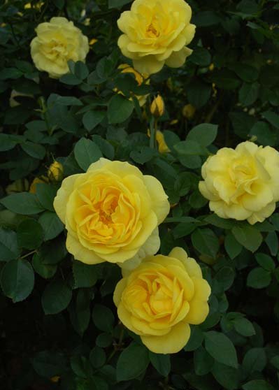 鮮やかな黄色のバラで香りもよい。半剣弁咲きからロゼット咲きのような形に変化する。1本のシュートに4~6輪の花がつき、春から秋まで咲き続ける。 半直立性 樹高1.3m